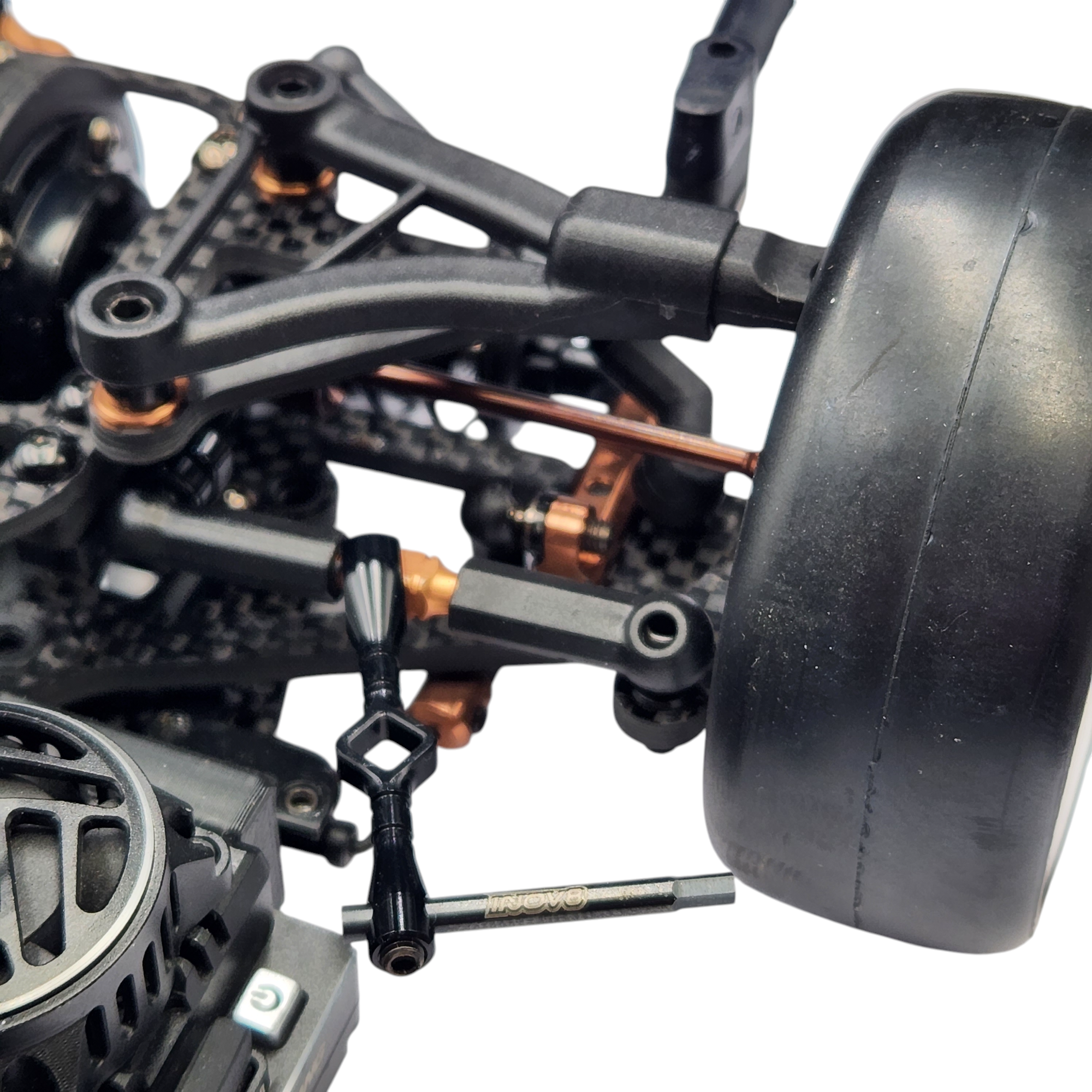 The Multi-tool also fits all 4mm turnbuckles on the market, which is a standard size in 1/10th On road applications!