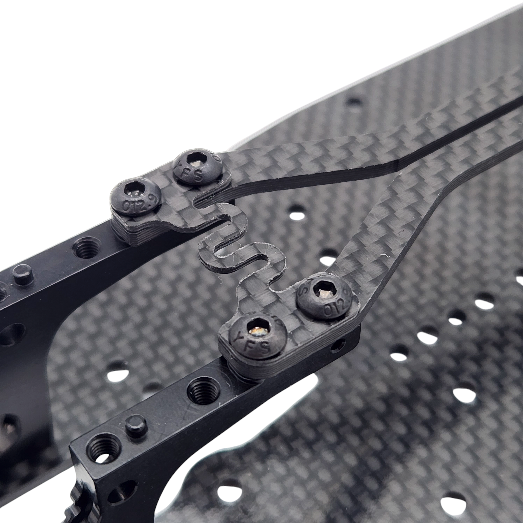 This topdeck brace offers a subtle increase in rigidity of the front bulkheads, and acts as a flex dampener for the front topdeck. This can be good in several conditions when you want the car to be slightly more round in the corner, without being edgy and difficult to drive. This wont have as much effect as the solid brace, but is a good medium option to keep in your caddy!